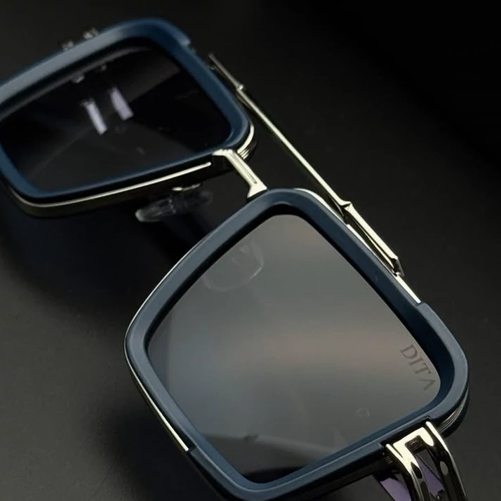 مدل خاص DITA با فریم ترکیب فلز و آبی مات لنز UV400 ضدخش و وضوح عالی .